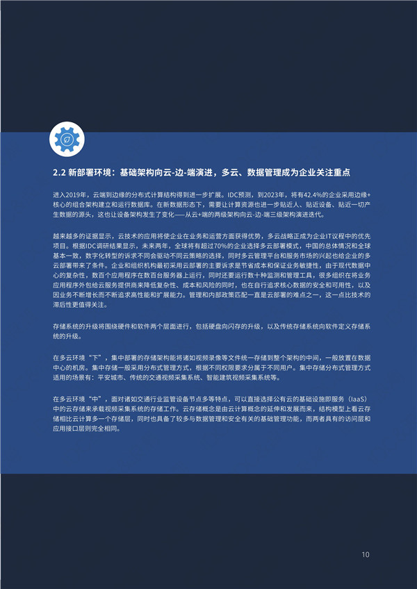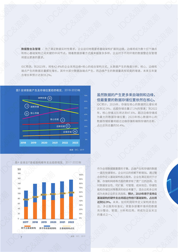 報告同時指出,隨著數(shù)據(jù)爆發(fā)式增長,到2025年全球新創(chuàng)建的數(shù)據(jù)將達到175ZB;企業(yè)對實時數(shù)據(jù)需求增加,到2023年實時數(shù)據(jù)占全球數(shù)據(jù)圈24.5%的份額;未來全球?qū)⒂谐^70%的企業(yè)選擇多云部署模式,到2023年42.4%的企業(yè)將采用邊緣+核心的組合架構(gòu),核心數(shù)據(jù)中心的數(shù)據(jù)存儲容量占比將超過50%。